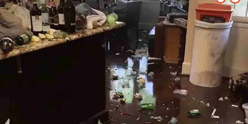 A messy house with empty bottles, dirty plates, and trash strewn everywhere | Source: Midjourney