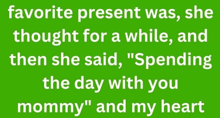 At bedtime, I asked my 5-year-old what her favorite present was and she thought for a while then said, “Spending the day with you mummy”