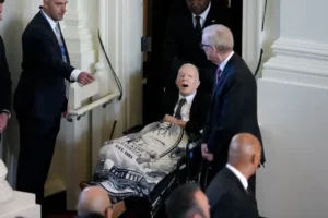 Carter left many in tears when he attended the service draped in a blanket that celebrated his and Rosalyn’s longtime love and marriage. The black and white blanket showcased a portrait of Rosalynn and himself with the text “The Carters” and “Est. 1885” embroidered on it, which honored the town where they met as children, Plains, Georgia.
