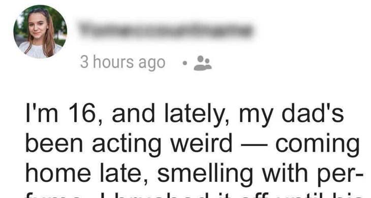 The backstory revealed a distant father who rarely spent time at home, leaving the teen and their siblings primarily raised by their mother. Despite the lack of emotional connection with the father, the teen began noticing peculiar behavior when the parent returned home late with a hint of perfume.