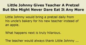 Little Johnny would bring a pretzel daily from his uncle’s bakery for his new teacher instead of an apple. What happens next is truly hilarious.
