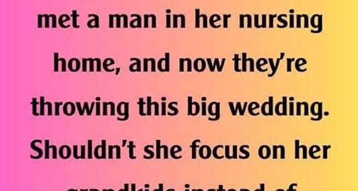 However, the decision behind her mother-in-law’s marriage had a deeper importance that she hadn’t realized until now.The woman’s letter:My 70-year-old mother-in-law is getting married. She met a man in her nursing home, and now they’re throwing this big wedding. I mean, at her age, it seems a bit… much, right?Shouldn’t she be focusing on her grandkids instead of pretending to be a bride?