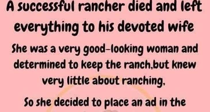 He proved to be a hard worker who put in long hours every day and knew a lot about ranching.. For weeks, the two of them worked, and the ranch was doing very well. Then one day, the rancher’s widow said to the hired hand, “You have done a really good job, and the ranch looks great.