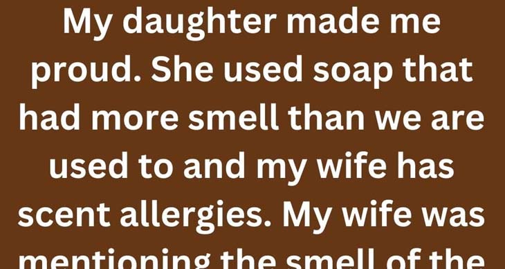 My daughter made me proud. She used soap that had more smell than we are used to, and my wife has scent allergies.