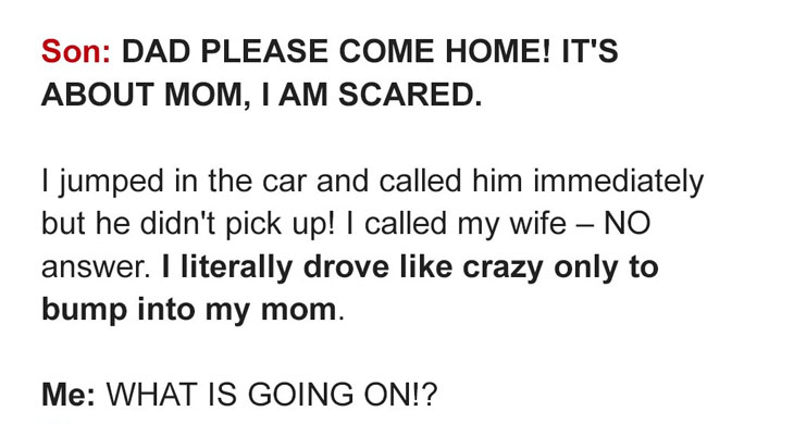 Dad, please come home! It’s about Mom! I’m scared.
