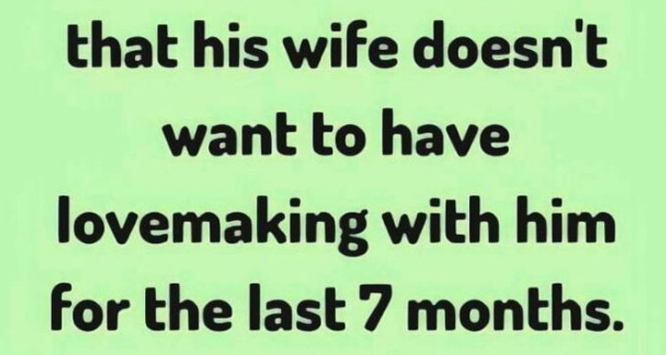 A man goes to his doctor and tells him that his wife hasn’t had sex with him for 7 months:
