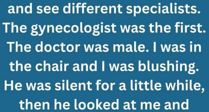 The gynecologist was the first.The doctor was male. I was in the chair and I was blushing.