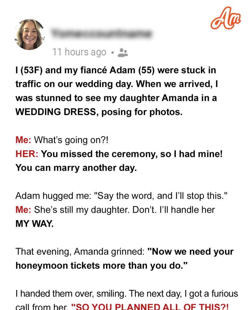 The audacity of it left me speechless. My beautiful ceremony, the one Adam and I had dreamed of and planned for months… it was all gone. It had been hijacked by my own daughter.