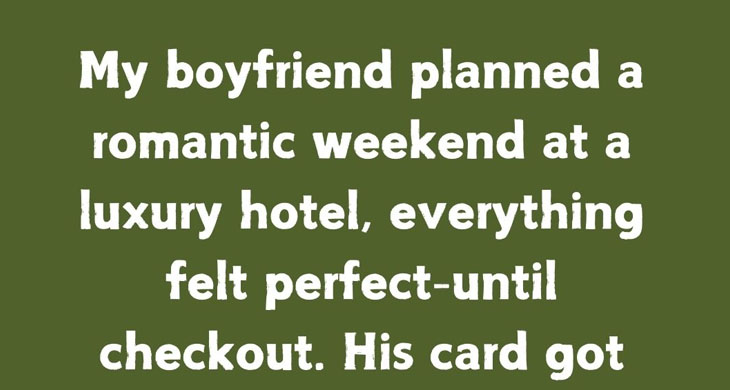 Story 10: My boyfriend planned a romantic weekend at a luxury hotel. Everything felt perfect—until checkout. His card got declined, and he turned red with embarrassment. I smiled and paid for our stay.