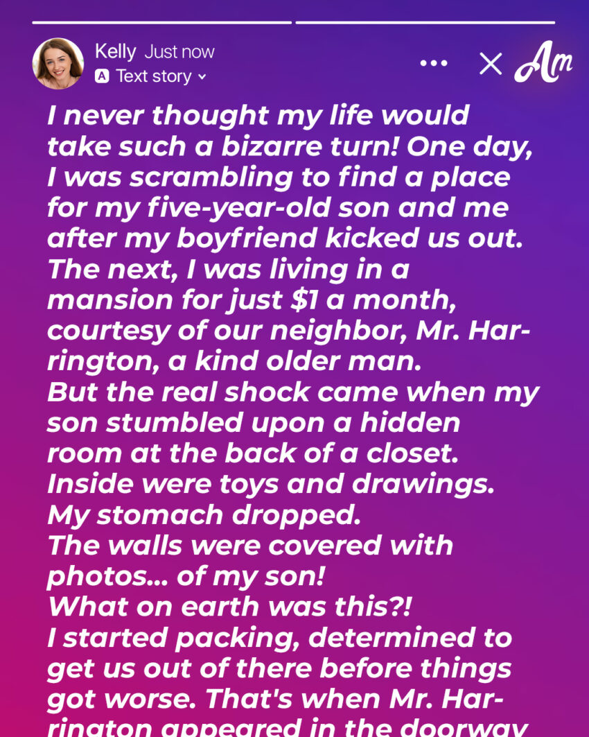 Mr. Harrington stepped into the room, his eyes glistening. “Your boyfriend is my son. Those photos are of him when he was a child. That secret room? It was his. I built it for him when he was Carter’s age.”