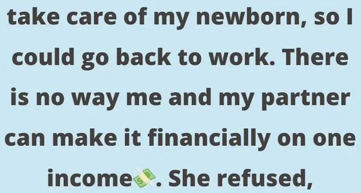 When she explained their situation, her mother offered to babysit—but only at a rate of $20 per hour, with additional late fees if they picked up the baby late.
