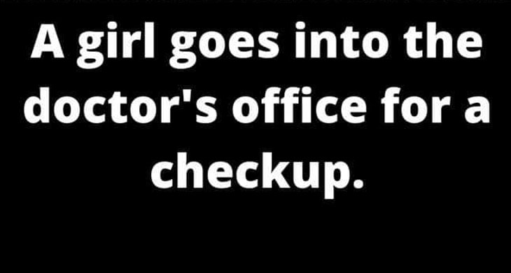 A girl goes into the doctor’s office for a checkup, and as she takes off her blouse, he notices a red “H” on her chest.