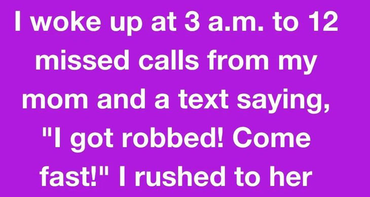 I woke up at 3 a.m. to 12 missed calls from my mom and a text saying, “I got robbed! Come fast!” I rushed to her house.