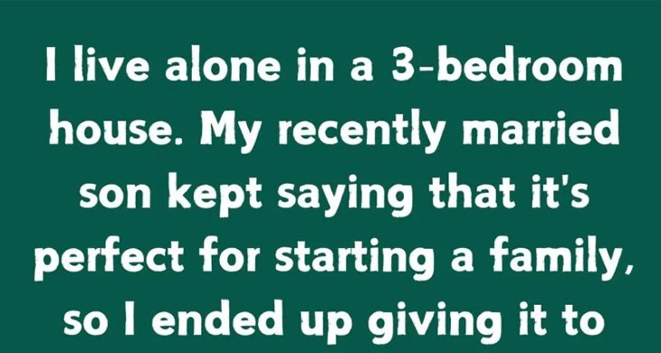 I live alone in a 3-bedroom house. My recently married son kept saying that it was the perfect home to start a family, so I ended up giving it to them while I went to live with my widowed sister.
