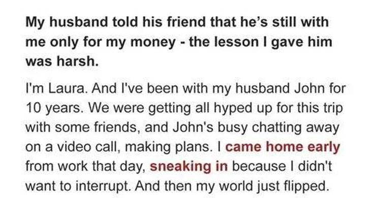 Unaware that she had returned from work, John was on a video call with a friend talking about the upcoming trip. What Laura overheard broke her world into a million pieces.