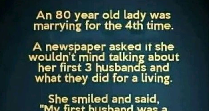 An 80-year-old lady, preparing for her fourth marriage, sparked curiosity when a local newspaper asked her about her previous husbands and their varied careers. With a mischievous smile, she proudly shared her unique journey. “My first husband was a banker,”