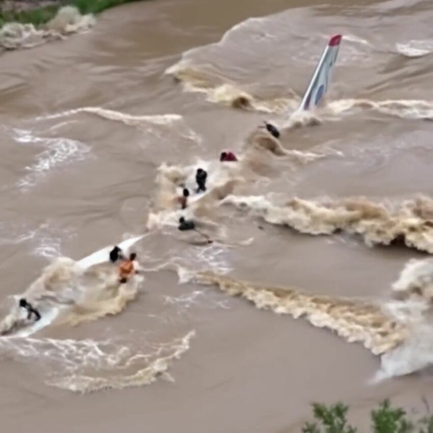 Passengers, visibly shaken but largely unharmed, gathered on the wings of the aircraft as they awaited rescue. The river’s strong current posed a challenge, but rescue boats managed to reach the stranded passengers promptly, ensuring that all were evacuated safely.