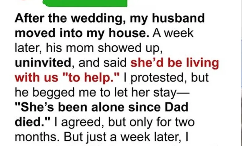 After the wedding, my husband moved into my house. A week later, his mom showed up, uninvited, and said she’d be living with us “to help.” I protested, but he begged me to let her stay—“She’s been alone since Dad died.” I agreed, but only for two months. But just a week later, I went into the kitchen, served myself some soup I had made, and my MIL stormed in.
