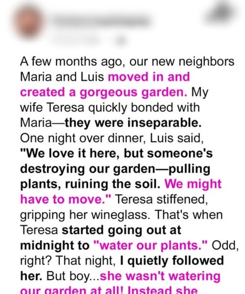 What confused me wasn’t just Luis’s revelation; it was the timing. The ruination had started around the same time my wife had built a curious new habit: slipping outside at midnight with her little green watering can, insisting the “moonlight made it the perfect time” to take care our garden.