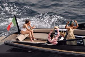 She made sure to incorporate iconic Italian scenery in her photos, including the naval flag fluttering in the background and the deep blue waters surrounding the yacht.