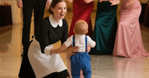 With wobbling determination, he walked past their jeweled arms and elegant gowns, heading toward the corner where Emily, the young maid, knelt quietly, gathering toys. She froze, eyes wide, as Ethan fell into her arms, clinging to her uniform with complete trust.