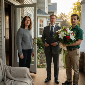 I was home, curled up on the couch, trying to convince myself that birthdays meant nothing at my age, when a firm knock sounded at the door. I opened it to find a man in a suit—my husband’s lawyer—standing beside a young flower delivery guy.
