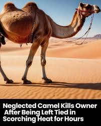 A neglected camel turned on its owner after being left tied for hours in extreme heat.