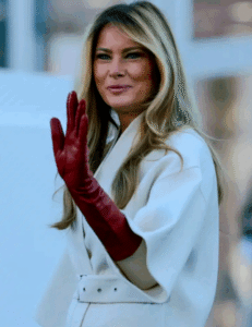 Melania Trump greeted the tree with her usual composed presence, wearing a winter-white coat paired with red gloves and patterned heels. Her outfit drew attention for its clean lines and classic styling, complementing the festive setting without overpowering it. Many observers noted the balance between simplicity and refinement that defined her appearance during the event.