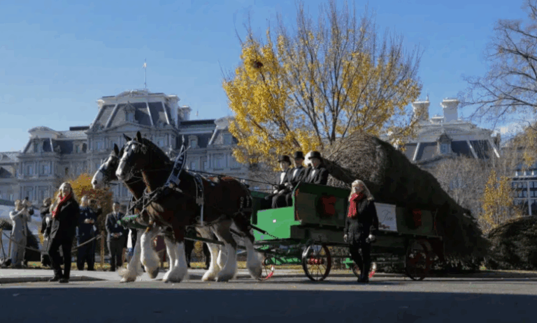 The North Portico was filled with seasonal tradition on November 24, 2025, as the official Christmas tree arrived at the White House. The 18½-foot fir from Michigan was welcomed with a ceremonial procession that included a horse-drawn carriage and a military band. The event marked the beginning of the holiday season and reflected long-standing customs associated with the celebration.