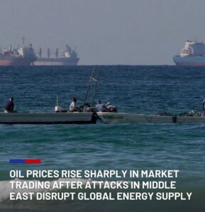 Oil prices rose sharply Monday as U.S. and Israeli attacks on Iran and retaliatory strikes against Israel and U.S. military installations around the Gulf sent disruptions through the global energy supply chain.