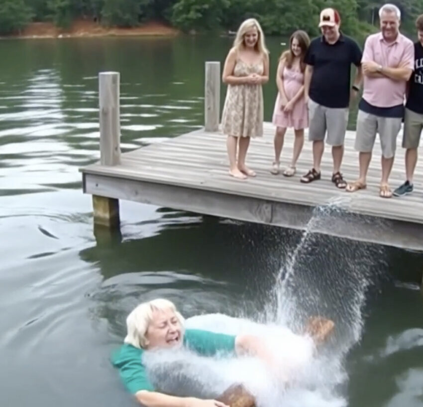 The woman, drenched and shivering, stood up with an unexpected steadiness. Her eyes, which moments ago had reflected sheer terror, now held an unyielding resolve. The laughter subsided, replaced by an uncomfortable silence as her family watched her intently, waiting for her reaction.
